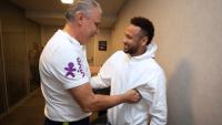 Neymar visitó este viernes a sus compañeros de selección en el hotel donde se concentran.