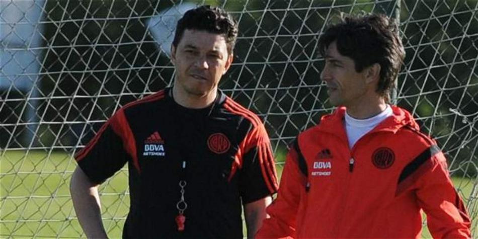 Marcelo Gallardo (izq.), entrenador de River Plate.