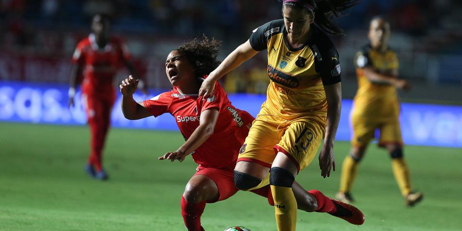 La capitana del América, Catalina Usme (derecha), fue pieza clave en el primer duelo de la final contra el DIM-Formas Íntimas, en el estadio Pascual Guerrero,