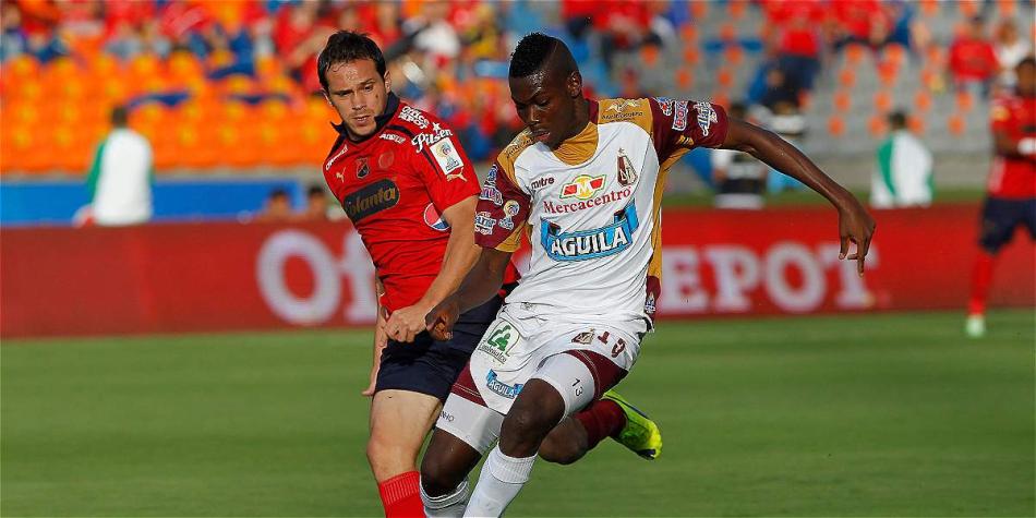 Min.2: Especialmente por izquierda, con Vladimir Marín y Hernán Hechalar, el 'Poderoso' trata de llegar al arco del Tolima. El equipo 'Pijao' aguanta en su campo.