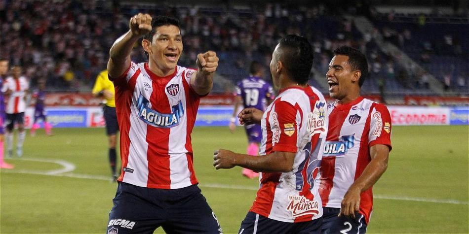 Roberto Ovelar (izq.) marcó los goles de Junior.