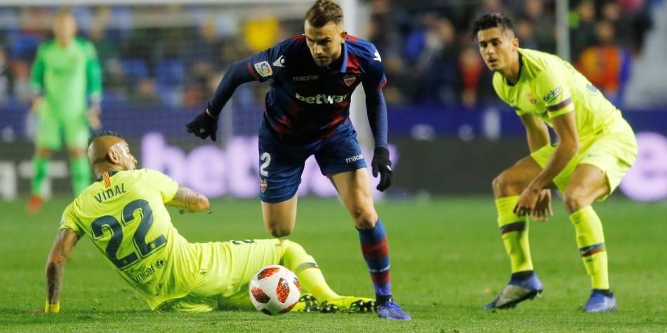 Entró frío el Barcelona al juego disputado en el Estadio Ciudad de Valencia. Así, el Levante aprovechó las desconcentraciones defensivas y liquidó a su favor. Apenas en 4 minutos de juego, el uruguayo Erick Cabaco cabeceó a placer para poner el 1-0 en el marcador, libre de marca en una falla de Sergio Busquets.
