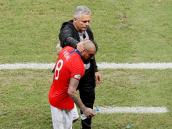 El chileno, siempre rudo dentro del campo, chocó con el colombiano, pero este le respondió.