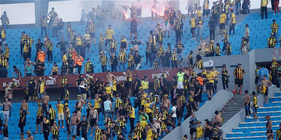 Los incidentes se originaron en la tribuna Amsterdam del estadio Centenario de Montevideo, lugar habitual de los hinchas del Peñarol, donde efectivos de seguridad y funcionarios de la recaudación fueron agredidos por fanáticos aurinegros.