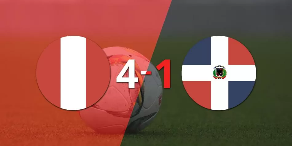 Perú fue más que Rep. Dominicana en el duelo amistoso que se llevó a cabo este martes en el estadio Monumental de la UNSA y lo derrotó con un marcador 4-1. Los goles del partido para el local los anotaron Sergio Peña (17' 1T, de tiro libre), Jesús Castillo (45' 1T), Piero Quispe (8' 2T) y Paolo Guerrero (48' 2T, de penal). Mientras que el gol de visitante lo hizo Jean López (12' 2T).