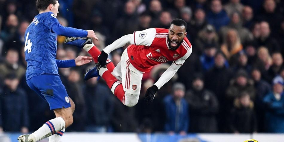 Min 25: Pase largo para Aubameyang y en la carrera es tomado por Azpilicueta. ¡Hay penal para Arsenal!