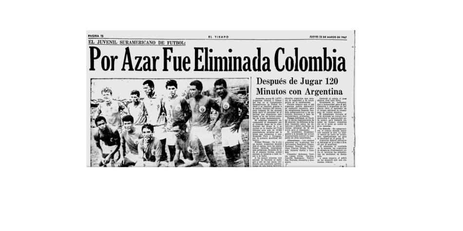 El 22 de marzo de 1967, la Selección Colombia se tuvo que despedir del Torneo Juvenil Suramericano luego de que una moneda favoreciera a Argentina y no a la Tricolor.